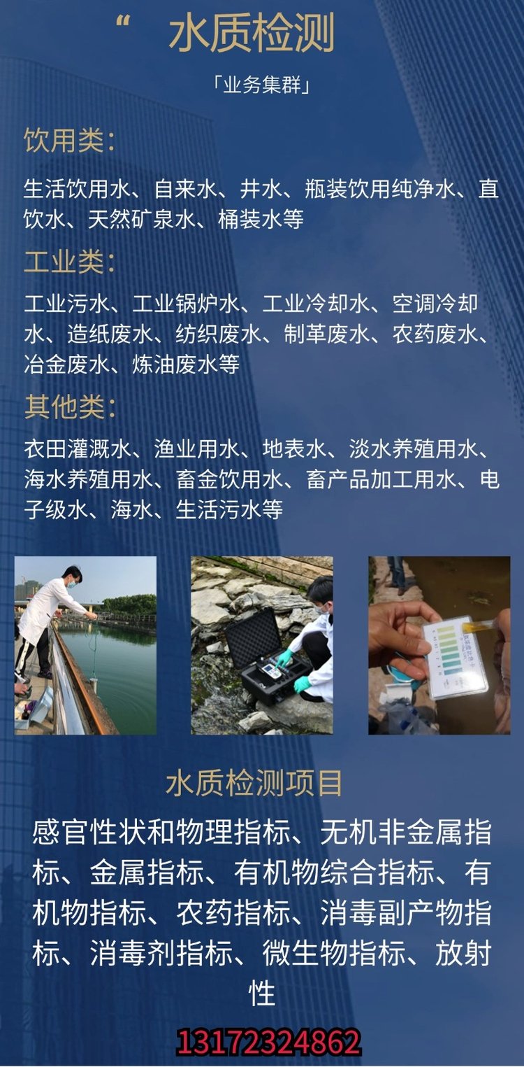 检测项目 | 重金属、感官性状、物理指标、有机物指标、微生物指标等 | ||