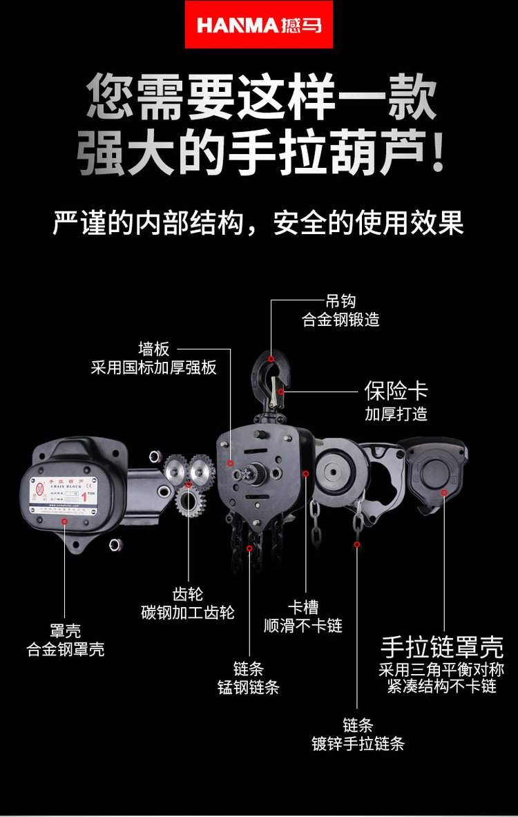 辰力批量生产定制小吨位迷你手拉手扳葫芦0.5T0.25T欧码撼马