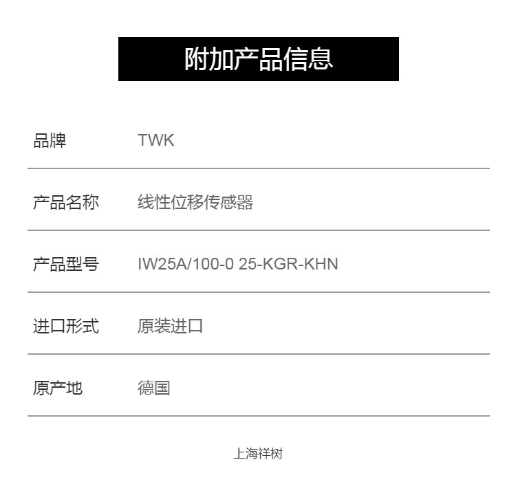 TWK 原装进口 线性位移传感器IW25A/100-0 25-KGR-KHN 品牌 | TWK | ||
