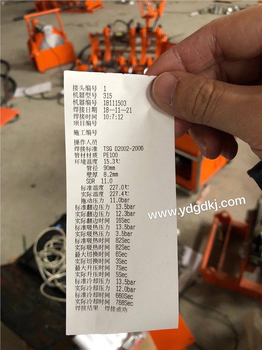 焊口的参数包括焊机型号、焊机编号、环境温度、焊接日期、焊接时间、焊工代号、工程编号、焊口编 号、焊接的管道元件类型(原材料级别、公称外径、公称壁厚或SDR值)、拖动压力(峰值拖动压力和 动态拖动压力)、加热板温度、成边压力、吸热时间、切换时间、焊接压力、冷却时间等。
