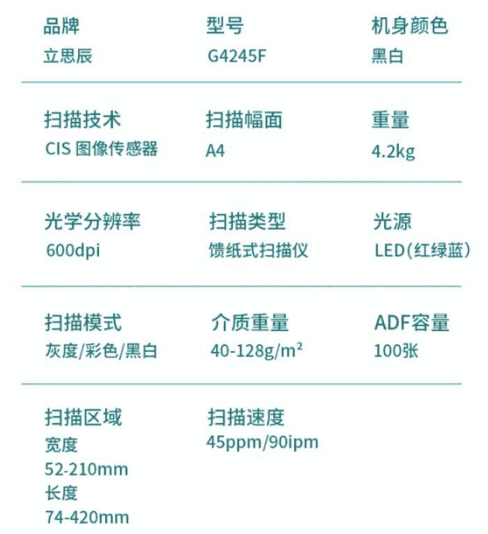 立思辰)扫描仪G4245F、A4幅面、彩色馈纸式扫描仪、自动进纸、自动双面扫描